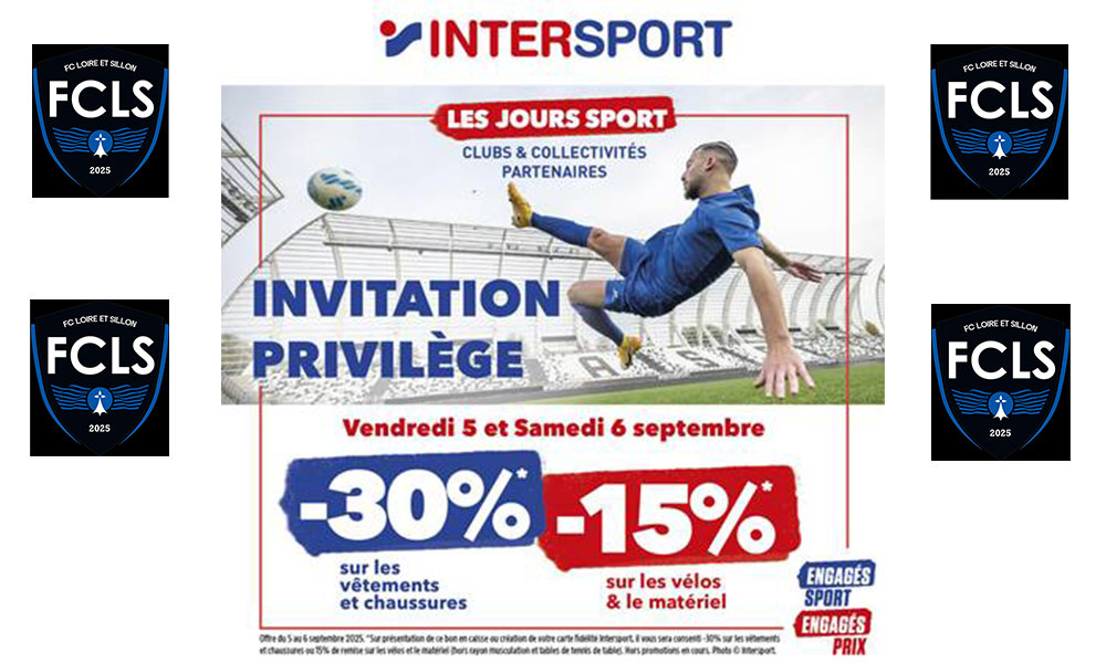 Chers amis sportifs, Nous espérons que votre saison est bien lancée et que tout se passe au mieux pour vous ! Dans le cadre de notre collaboration, votre magasin Intersport de BASSE GOULAINE / REZE / CLISSON a le plaisir de proposer l’OFFRE ...