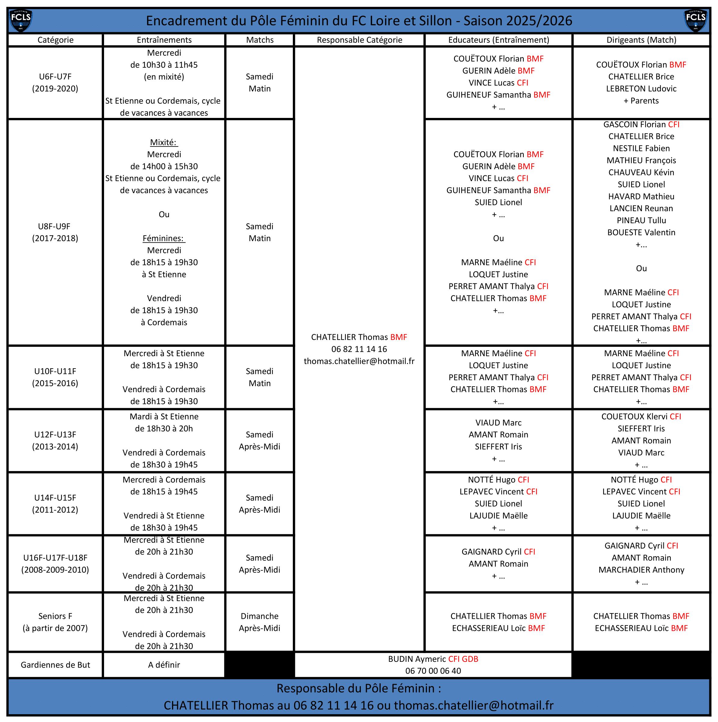 Vous trouverez sur cette page, notre responsable Pôle Féminin du FC LOIRE & SILLON